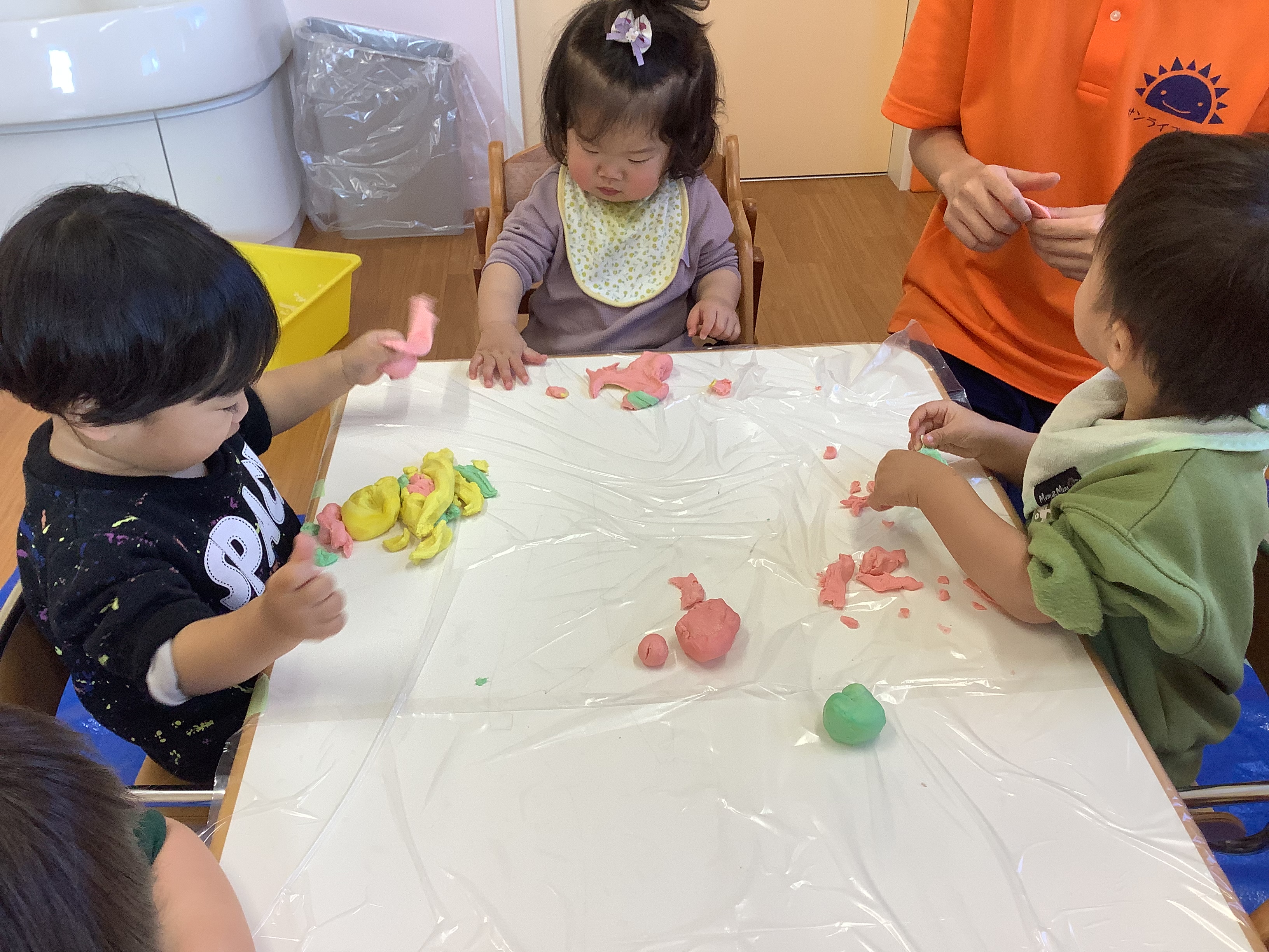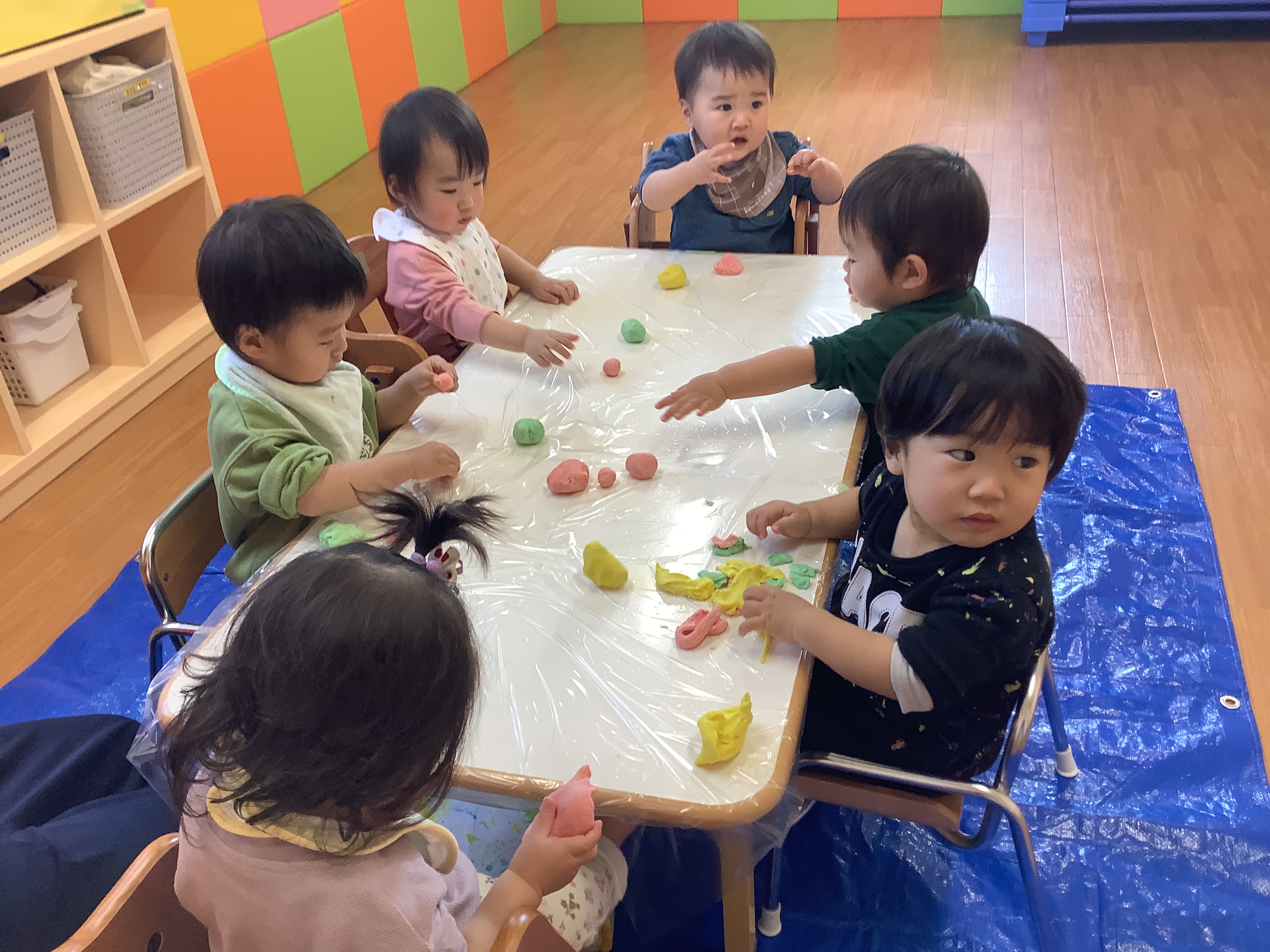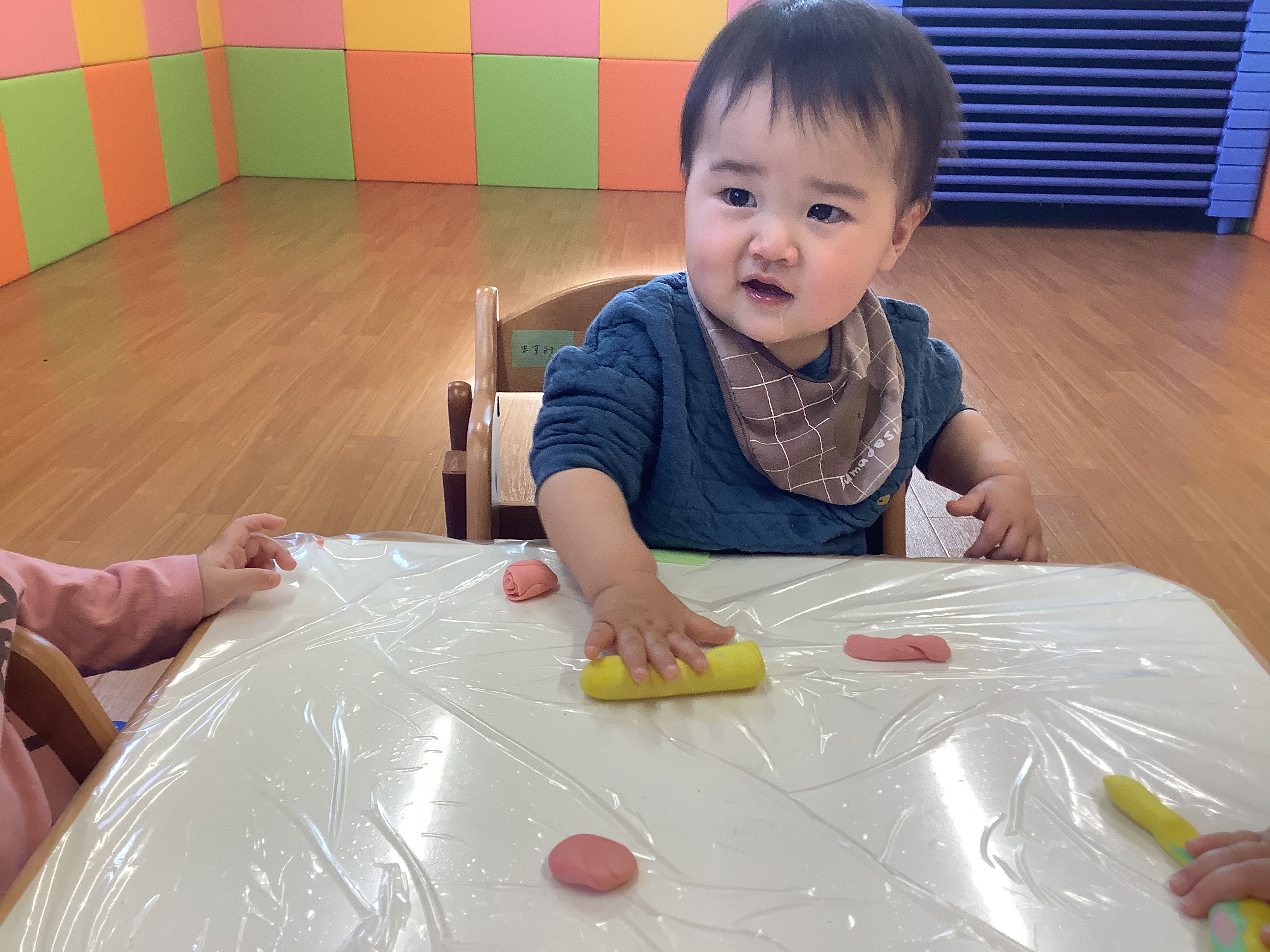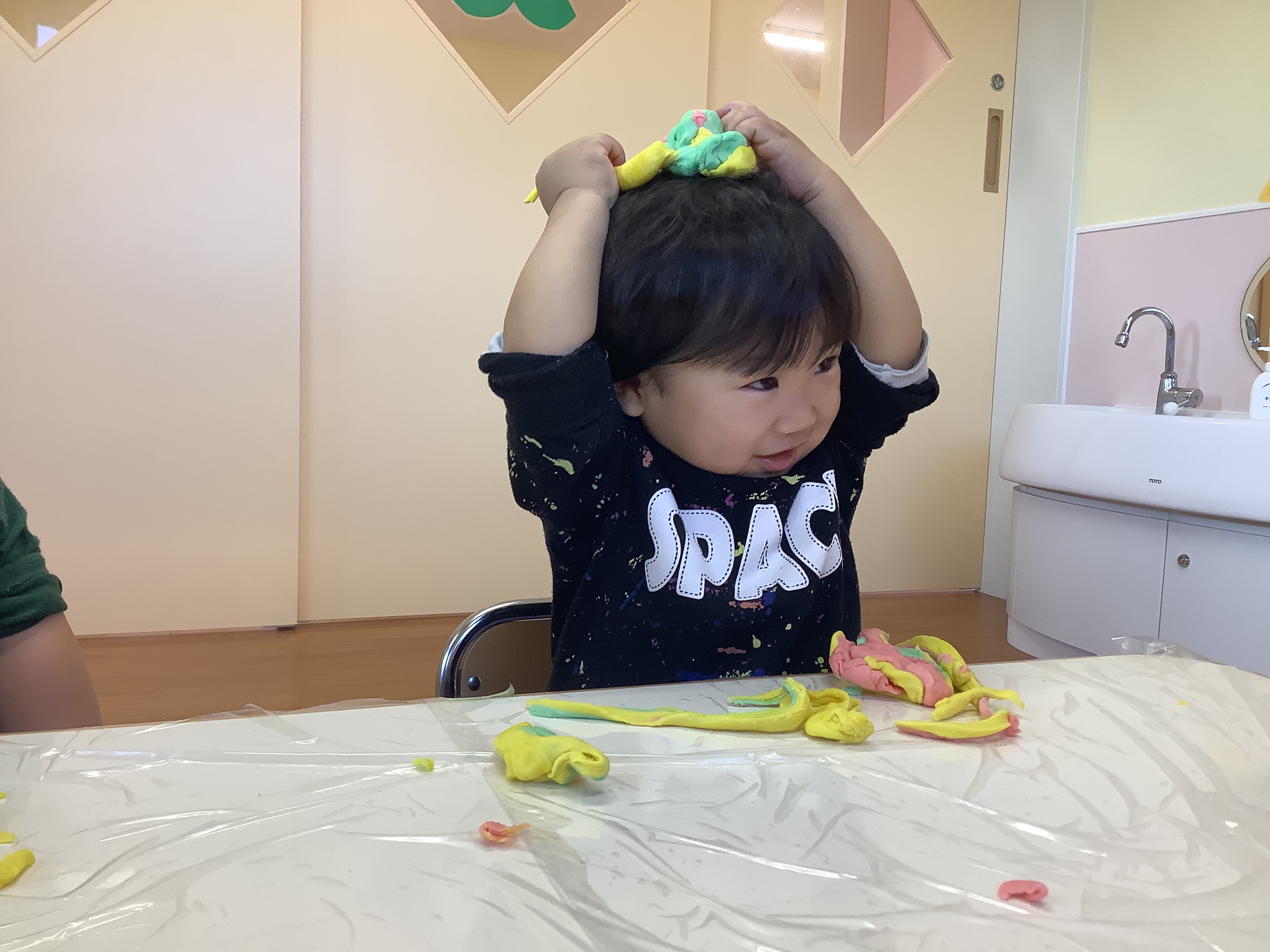 ぎゅーっと引っ張ったり、小さくちぎるのも上手でしたよ![]()