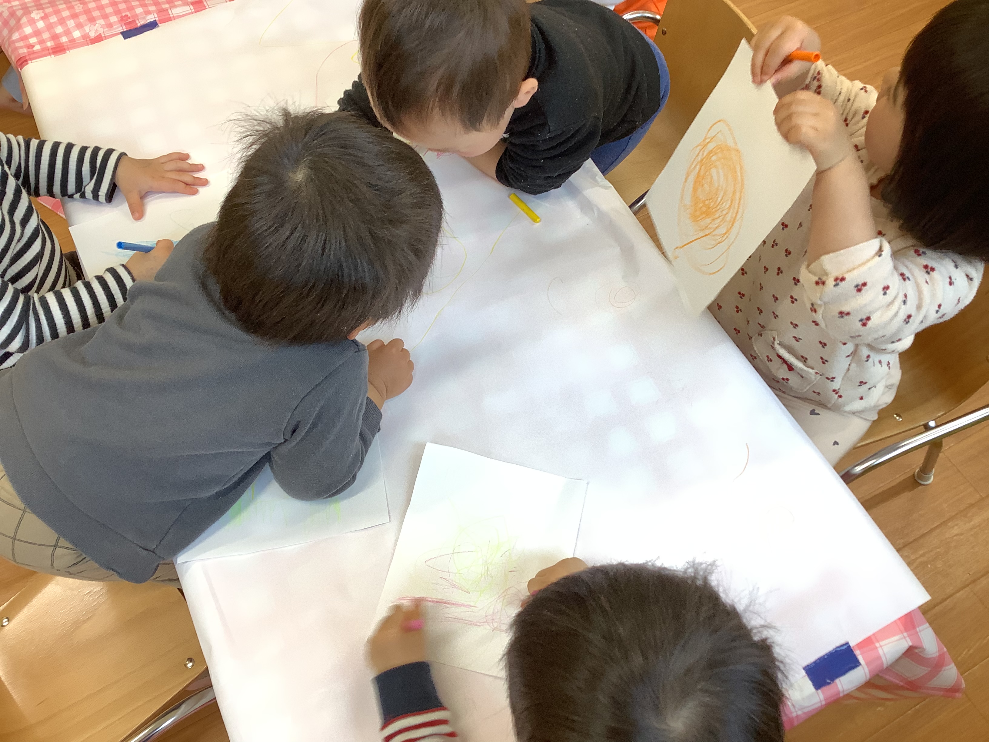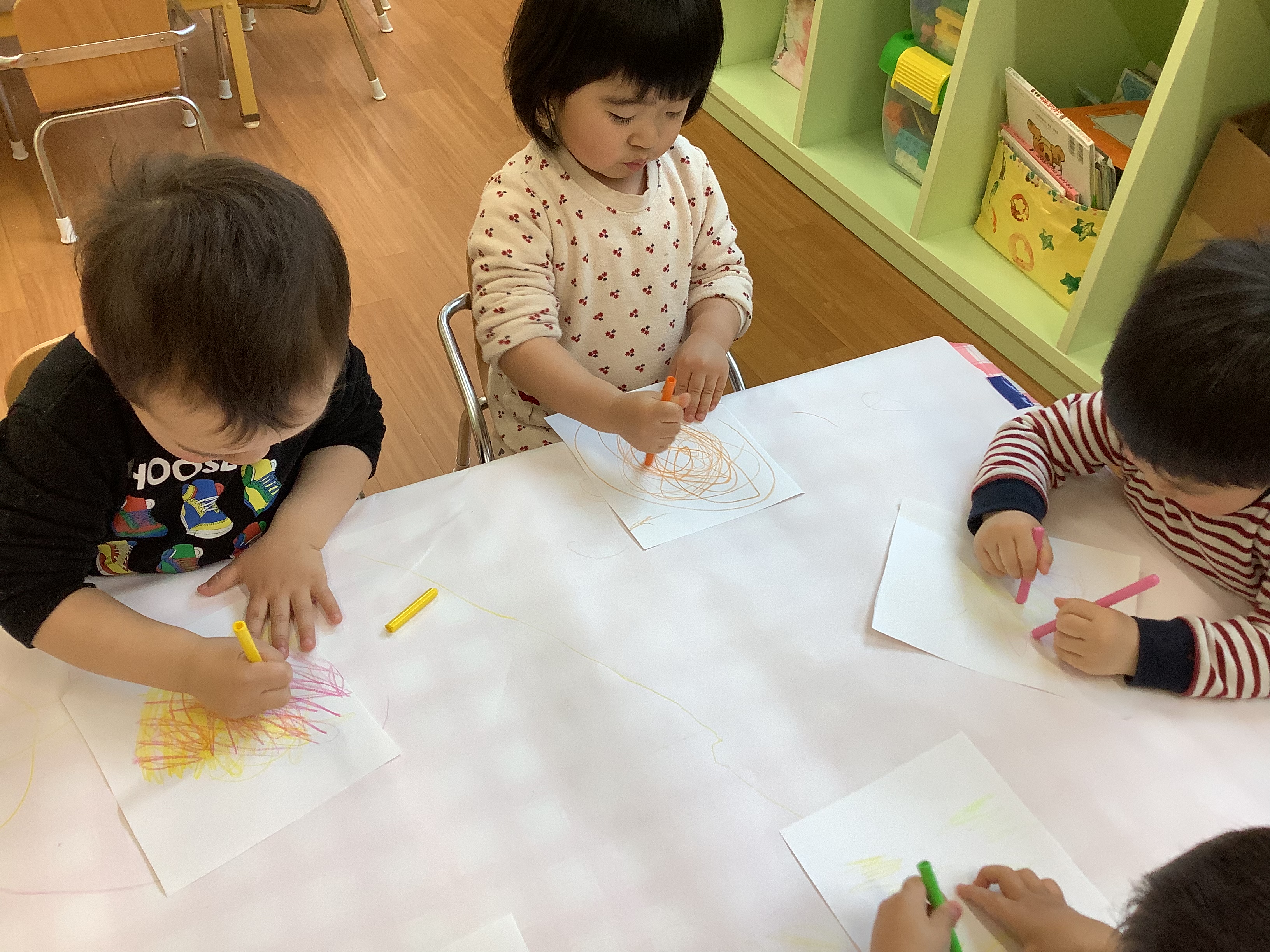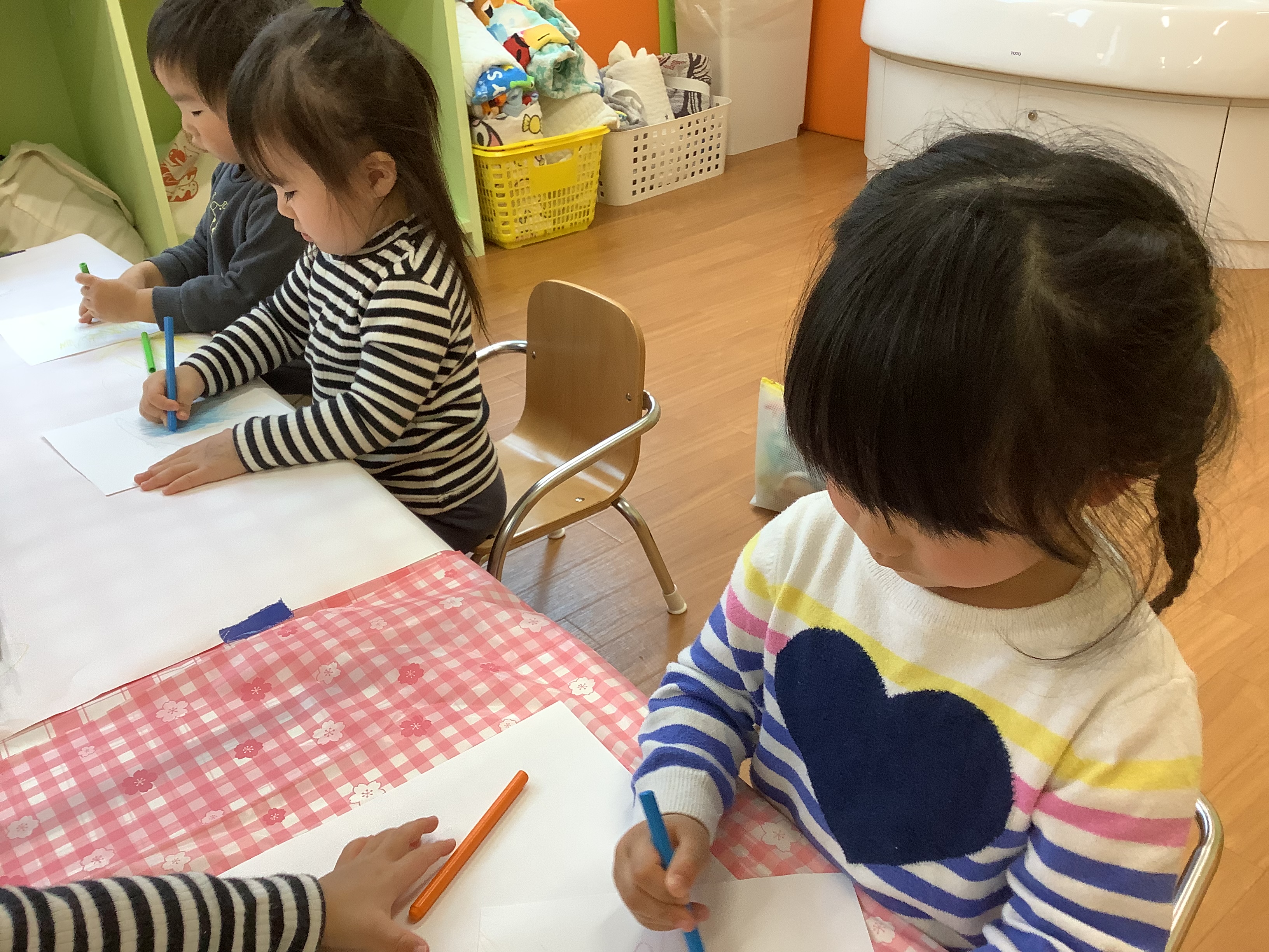 新しいお友達と一緒にお絵描きやシール貼りをしました!