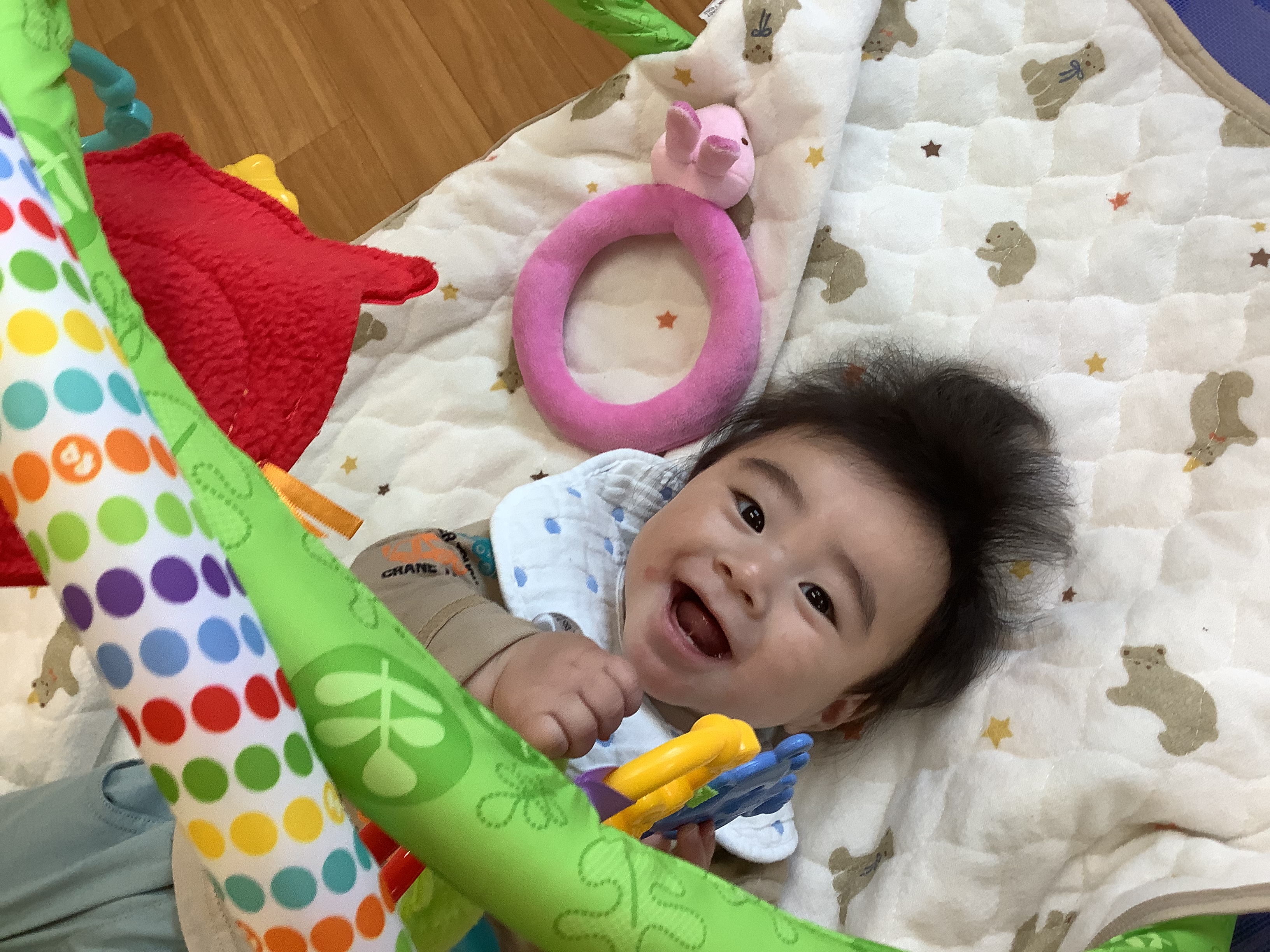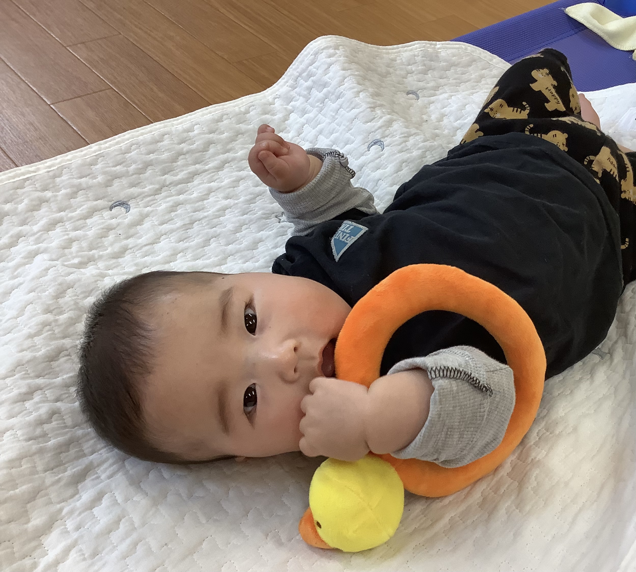 可愛いおててで一生懸命おもちゃを掴んで…☺️