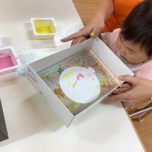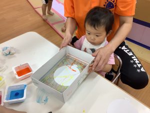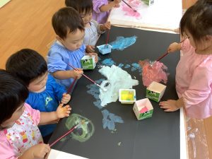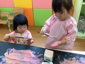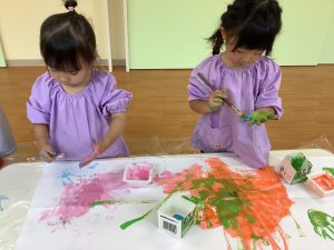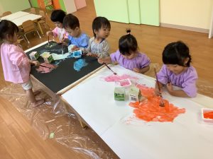 いろんな色を混ぜてペタペタ楽しんでいました♪