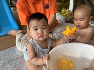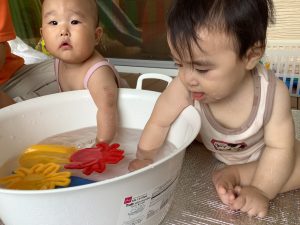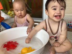 初めて水遊びをしました♪
