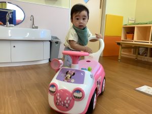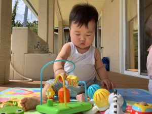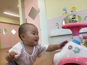 おもちゃに手を伸ばして上手に遊んでいます!