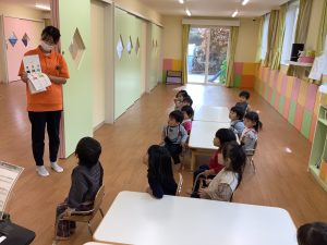保育者が「いろいろいろいろ、、、」と言うと皆んなで「ばあ😆!」