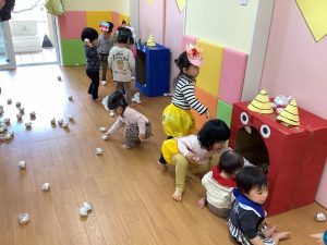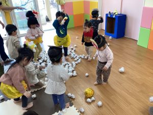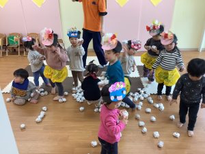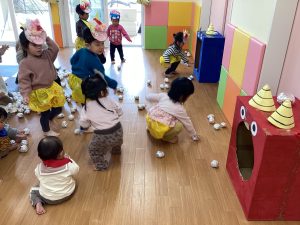 ボールをマメに見立てて「鬼は外!福は内!」真剣な表情で鬼退治してくれました👏🏻