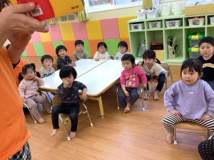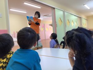 絵も音も可愛い絵本に子どもたちも真剣な表情でした☺️