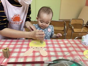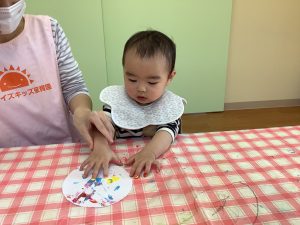 皆んな上手にぺったんこ!カラフルな作品の出来上がりです♪