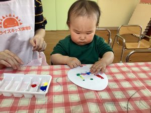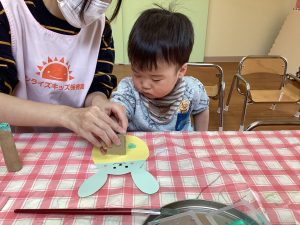 自由にお絵描きをしたり、てんとう虫にシールをつけて模様付けをしました🎶