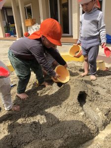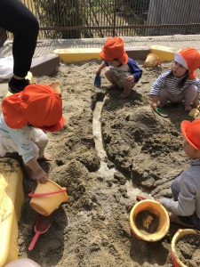 砂場を貸し切ってトンネルを作ってお水を流しましたよ😄♪
