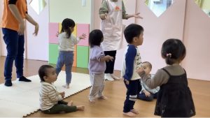 在園児のお友達は保育者の真似をしながらお話ししてみたり、
