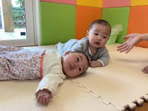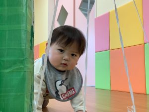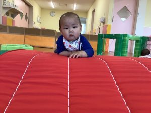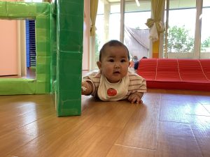 ずり這いやハイハイで動けるお友達は好きな遊びへ一直線!