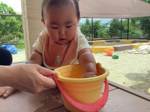 手でパシャパシャ!とお水の感触を楽しんだり、