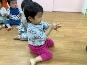 お歌の最中おててでカタツムリを表現しているお友だち発見!