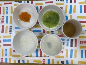 粥 野菜スープ 人参ペースト ブロッコリーのだし煮
