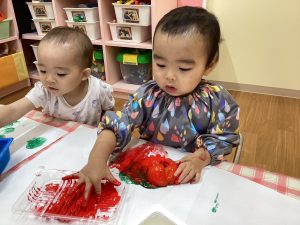 反対に野菜を絵の具で色付けるお友達も…😁