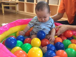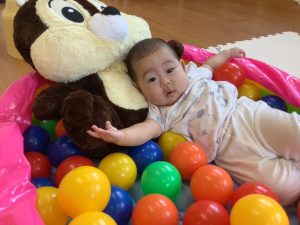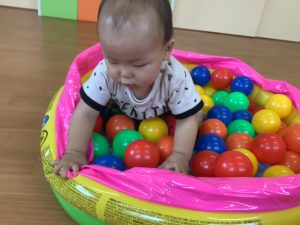 いつもはプールにお水を入れて遊んでいますが今回はボール!!