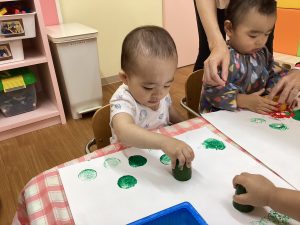 一生懸命にスタンプして楽しむいちごぐみさん!この作品がどう変身していくのか楽しみです🎵