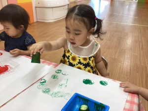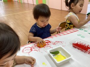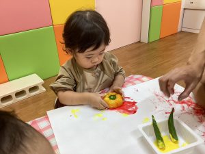初めての野菜スタンプに挑戦!!