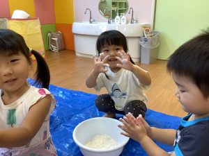 サラサラの小麦粉とは違う感触に大喜びでした😊
