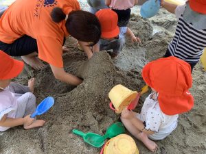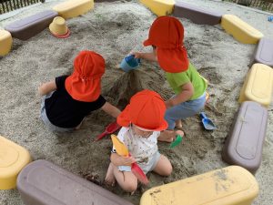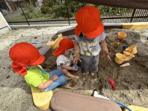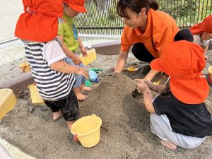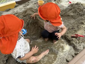 砂場に水を流してどろんこ遊びをしました🎵