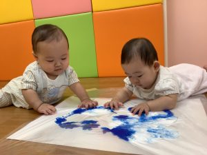 手のひらや指で触って感触を楽しむももぐみのお友達☺️