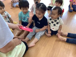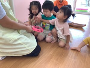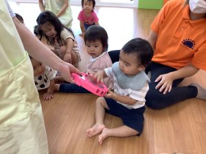 りんごぐみさん、いちごぐみさんは自分で叩けた嬉しさを感じられるように行っています。名前をお話ししながら上手にできるようになってきましたよ!