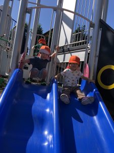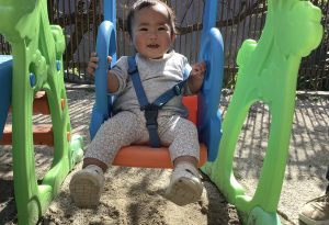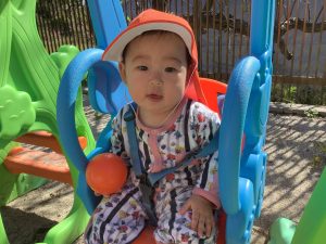 園庭の固定遊具のブランコに揺られてニコニコ可愛い笑顔を見せてくれました。