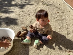 大きな松ぼっくりにも興味津々です🐿️