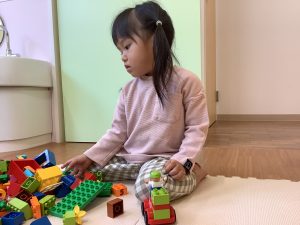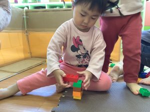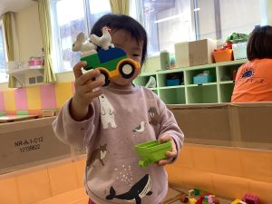 そして、今週は保育園に新たに加わった、新しい玩具で遊ぶ姿も多く見られました!動物や女の子、ディズニーキャラクターのレゴブロックを寄付を頂き、園のレゴブロックにはなかった種類なので、また遊びも広がり集中して遊んでいましたよ🍀