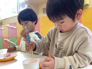 また、お箸でビーズやスポンジの箸つまみも取り組んでいます!
