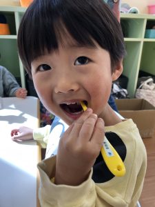 歯磨きは、カバくんがお手本になって磨いてくれるので、どこを磨くのか分かりやすく、子どもたちも集中して丁寧に磨く姿が見られていますよ👍