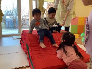 いちご組さんやもも組さんの子どもたちは、好きなコーナーで遊んだり、元気に滑り台を滑って体を動かしたりして楽しんでいました🎶小さいお友だち同士でも、少しずつ一緒に遊ぶ姿が見られるようになって来ています😊子どもたちの成長は嬉しいですね!