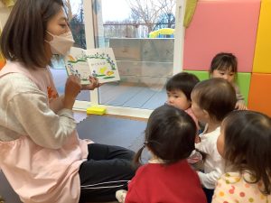 では、早速子どもたちの絵本の時間の様子を紹介します😆