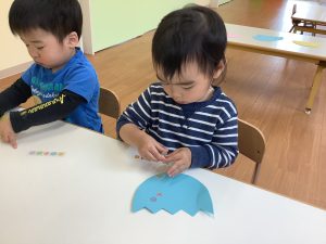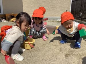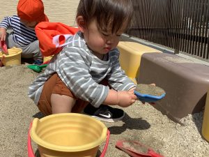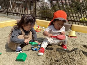 入園してきた子たちは、初めての場所にドキドキや不安な気持ちいっぱいで毎日過ごしているようです。そんな中でも、先生たちの優しい声かけやスキンシップで、少し落ち着ける時間が出てきたり、楽しめる玩具や遊びもあり、笑顔が見られる姿も出てきました。これからゆっくりと保育園生活に慣れていきましょうね😊