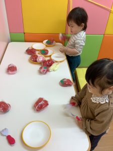その後はいちごを摘んで、いちご狩りごっこ😊