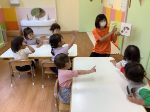 人差し指を出して、絵本の読み合いをしながら、呪文をかけて楽しんでいました🎶