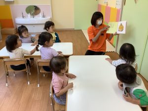 お給食の準備を待つ時間に、食べ物におまじないを掛ける楽しい絵本を見ていました!