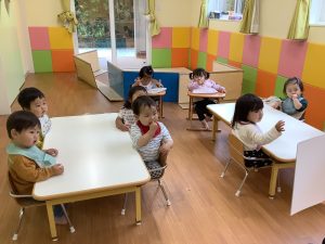 また、動物さんがもぐもぐ食べ物を食べるお話で、その後のお給食を楽しみに待つ子どもたちは、