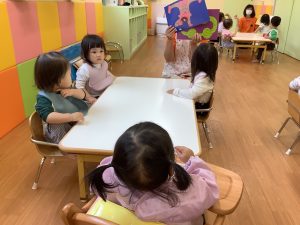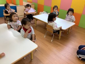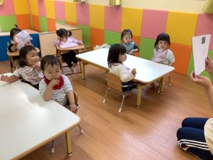 お給食を待つ時間に、いちご組のお友達が紙芝居を読んでいました!