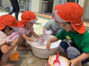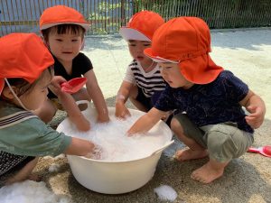 今週は暑い日が続きましたね!そんな中、子どもたちは、、水遊び✨泡遊び✨泥遊び✨