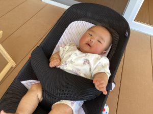 今月に入園したもも組のお友達もテラスで日光浴☀️気持ち良さそうですね🎵