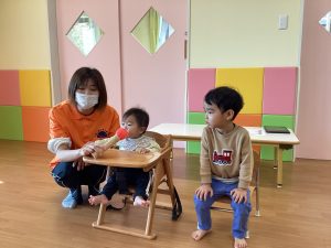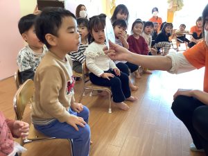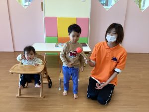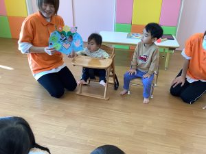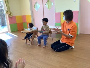 2歳児さんは、みんなの前で自分の名前を紹介することが出来ました😆