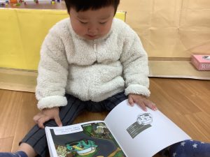 自由に自分で絵本を楽しんでみたりして過ごしているいちご組🍓のお友だちです。