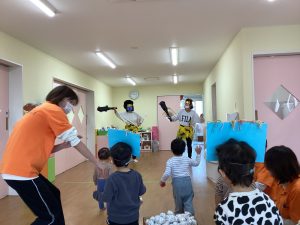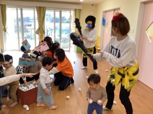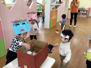 子どもたちのご家庭では、2日に行っているようで、お家での豆まきの様子をお話ししてくれるお子さんもいました😆保育園でも豆まきするのかなあー?とお話しする声もありました♪