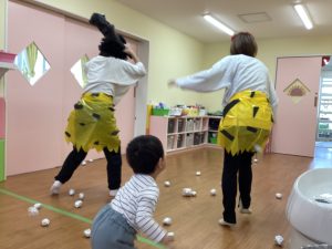 お部屋中に撒かれた、豆集めゲームもしました🥜豆あったよー!とニコニコで集めていた子どもたちです😌