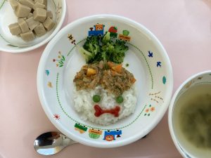 1、2歳児のお子さんは鬼のお顔に気付き、嬉しそうに食べていました♪