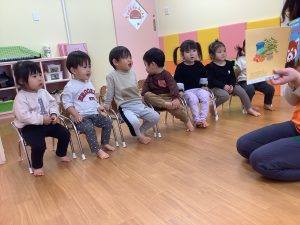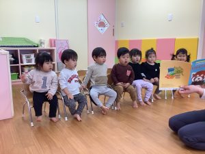 いちご組のおともだちが、月刊の絵本をみんなで見ています!