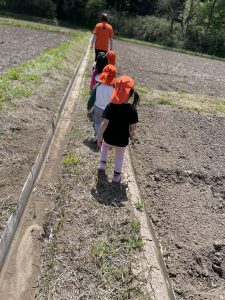 田んぼ道を一列で🛣️