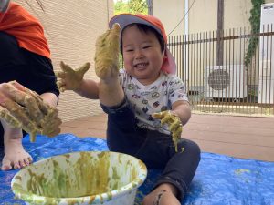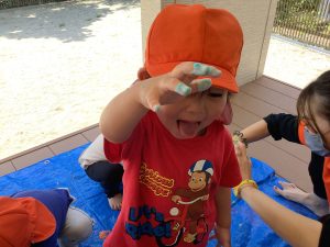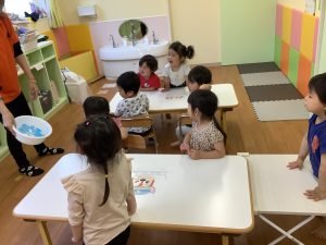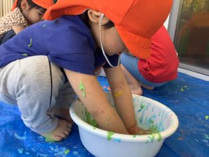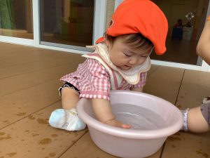 もも組🍑さんはお水に触ったり、シャボン玉を触ったり、お砂を触ったり、