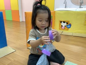 カーテン遊びや紐通しなど、それぞれ好きな遊び方をしていますね🤗