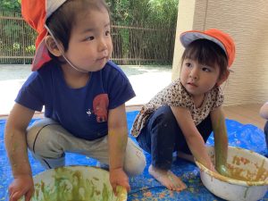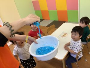 りんご組🍎のお友だちは、片栗粉スライムをして遊んでいました!